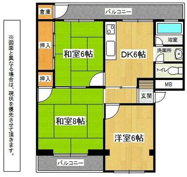 | 間取り(内訳) | 3DK(和室6/和室8/洋室6/DK6) | ||